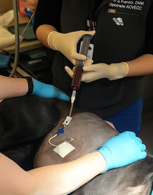 Prep skin over the jugular vein aseptically. Collect approx. 5-10 mL/kg blood using syringe and needle with no additives. A jugular catheter can also be used if appropriate. Collect in 20-35 mL increments until calculated dose achieved.